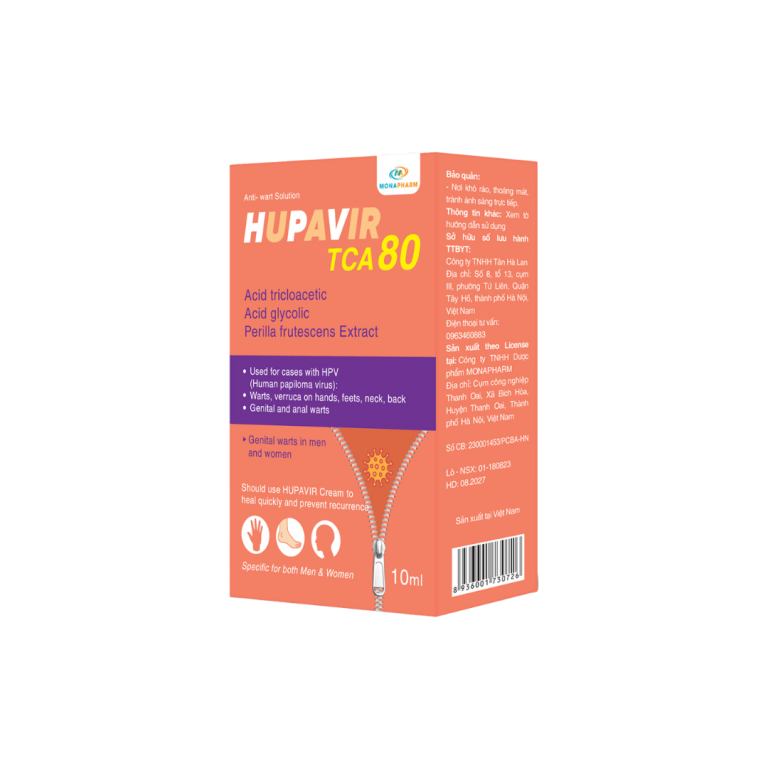 Nhận hàng từ 3-5 ngàyDung dịch chấm Hupavir TCA80 chứa Sinecatechin – có nghiên cứu lâm sàng hiệu quả virus HPV. Chấm rụng mụn sùi, mụn cóc. Hỗ trợ ức chế sự phát triển của virus HPV, ức chế sự nhân lên và đào thải virus HPV