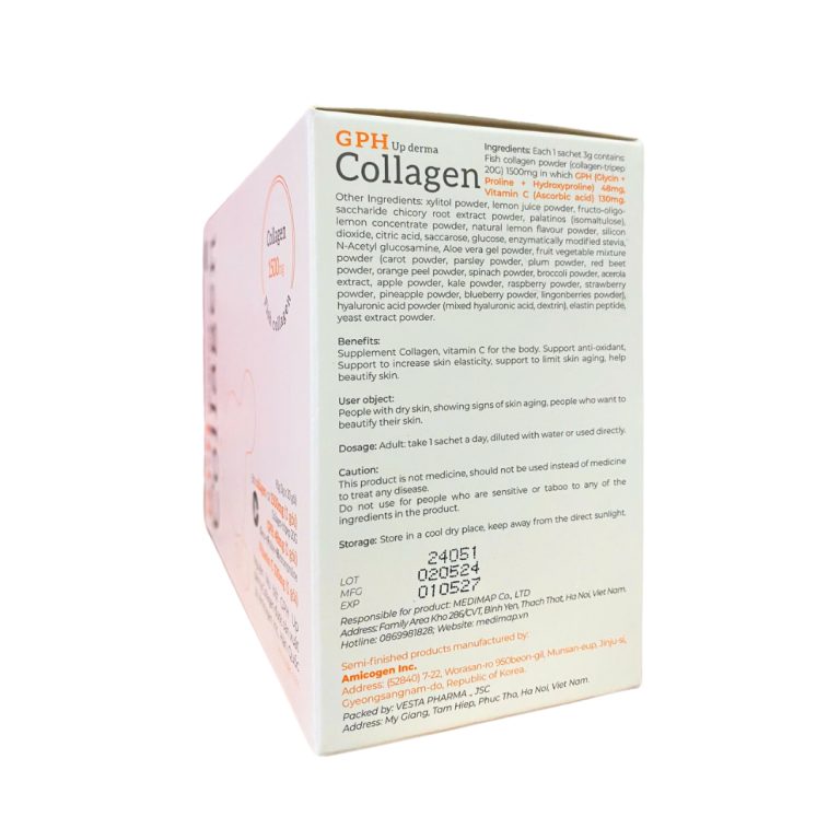 – Tương ứng hỗn hợp GPH (Glycine + Proline + Hydroxyproline): 48 mg -