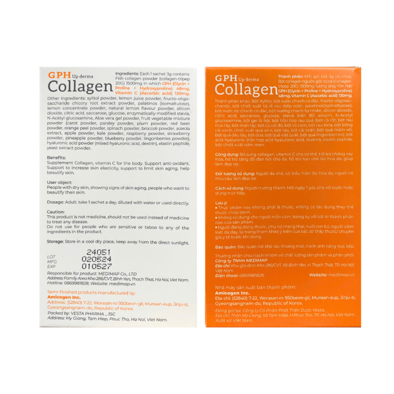 – Tương ứng hỗn hợp GPH (Glycine + Proline + Hydroxyproline): 48 mg -