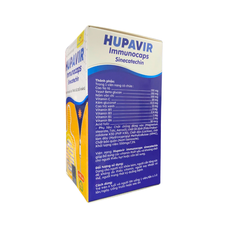 Viên uống Hupavir Immunocaps chứa Sinecatechin – có nghiên cứu lâm sàng hiệu quả virus HPV. Giúp kích thích hệ miễn dịch sinh kháng thể chống lại HPV, ức chế sự nhân lên và đào thải virus HPV. Hỗ trợ bổ sung vitamin và khoáng chất thiết yếu, tăng sức đề kháng cho cơ thể