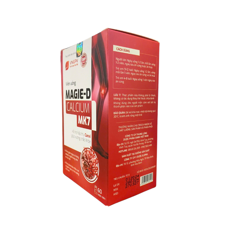 Vitamin D3 + MK7: hỗ trợ đưa canxi vào xương tốt hơn, giảm nguy cơ lắng đọng canxi ngoài mô xương.