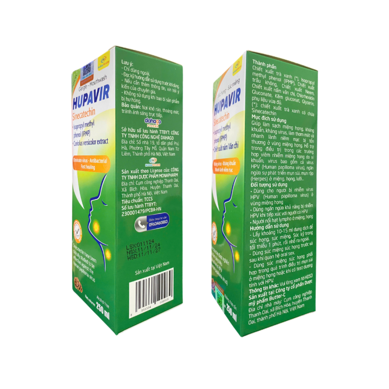 Hupavir chứa Sinecatechin được nghiên cứu lâm sàng giúp ức chế virus HPV, hỗ trợ làm sạch, kháng khuẩn, kháng virus và thúc đẩy lành niêm mạc tổn thương.