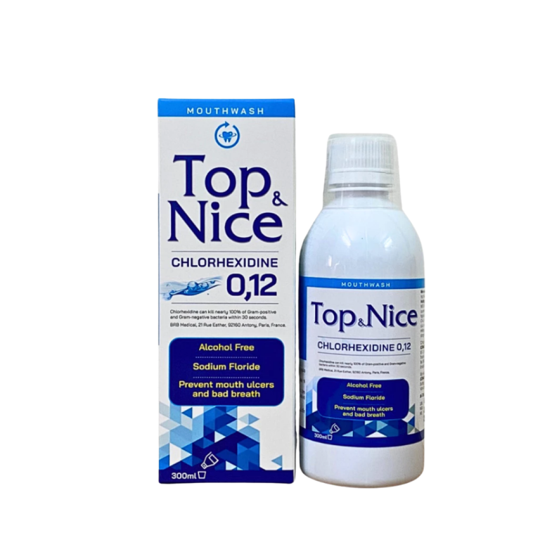 Nước súc miệng TOP & NICE với 0,12% Chlorhexidine – nồng độ đạt chuẩn quốc tế, giúp làm sạch khoang miệng, giảm vi khuẩn gây hại và hỗ trợ phòng ngừa virus. Sản phẩm có khả năng kháng khuẩn vượt trội: ở nồng độ thấp giúp ức chế vi khuẩn, còn ở nồng độ cao tiêu diệt hoàn toàn và ngăn ngừa chúng quay trở lại.