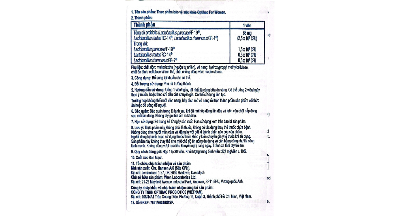 1. Thành phần của viên uống Optibac (cho 1 viên)