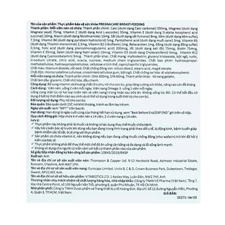 Pregnacare Breast Feeding-Bổ sung dinh dưỡng cho mẹ sau sinh