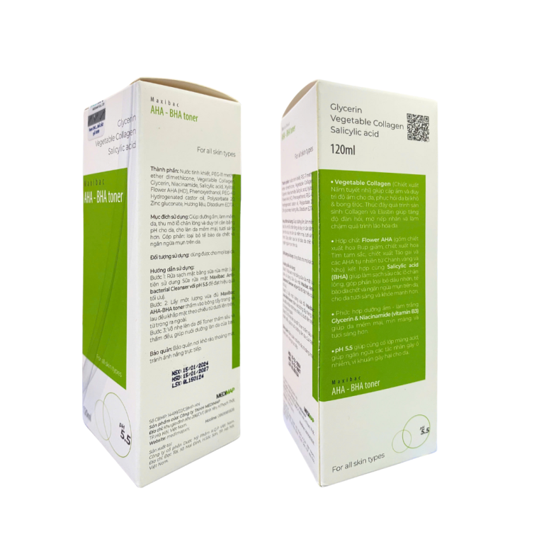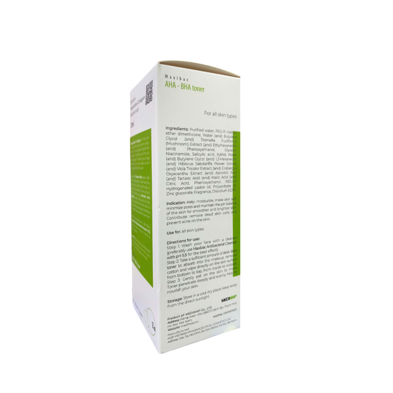 Toner Maxibac AHA-BHA giúp cấp ẩm và duy trì độ ẩm cho da, phục hồi da bị khô và bong tróc. Giúp tăng độ đàn hồi, mờ nếp nhăn và làm chậm quá trình lão hóa da. Hỗ trợ làm sạch sâu các lỗ chân lông, góp phần loại bỏ dầu nhờn, tế bào da chết và ngăn ngừa mụn trên da, cho da tươi sáng và khỏe mạnh hơn.
